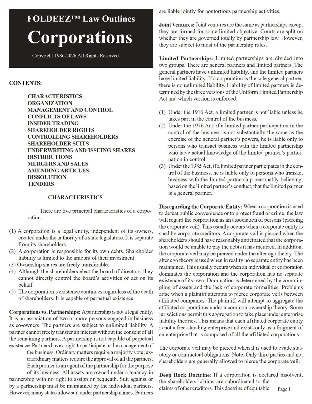 A Special Offer: CORPORATIONS FOLDEEZ LAW OUTLINE AT 1/2 PRICE