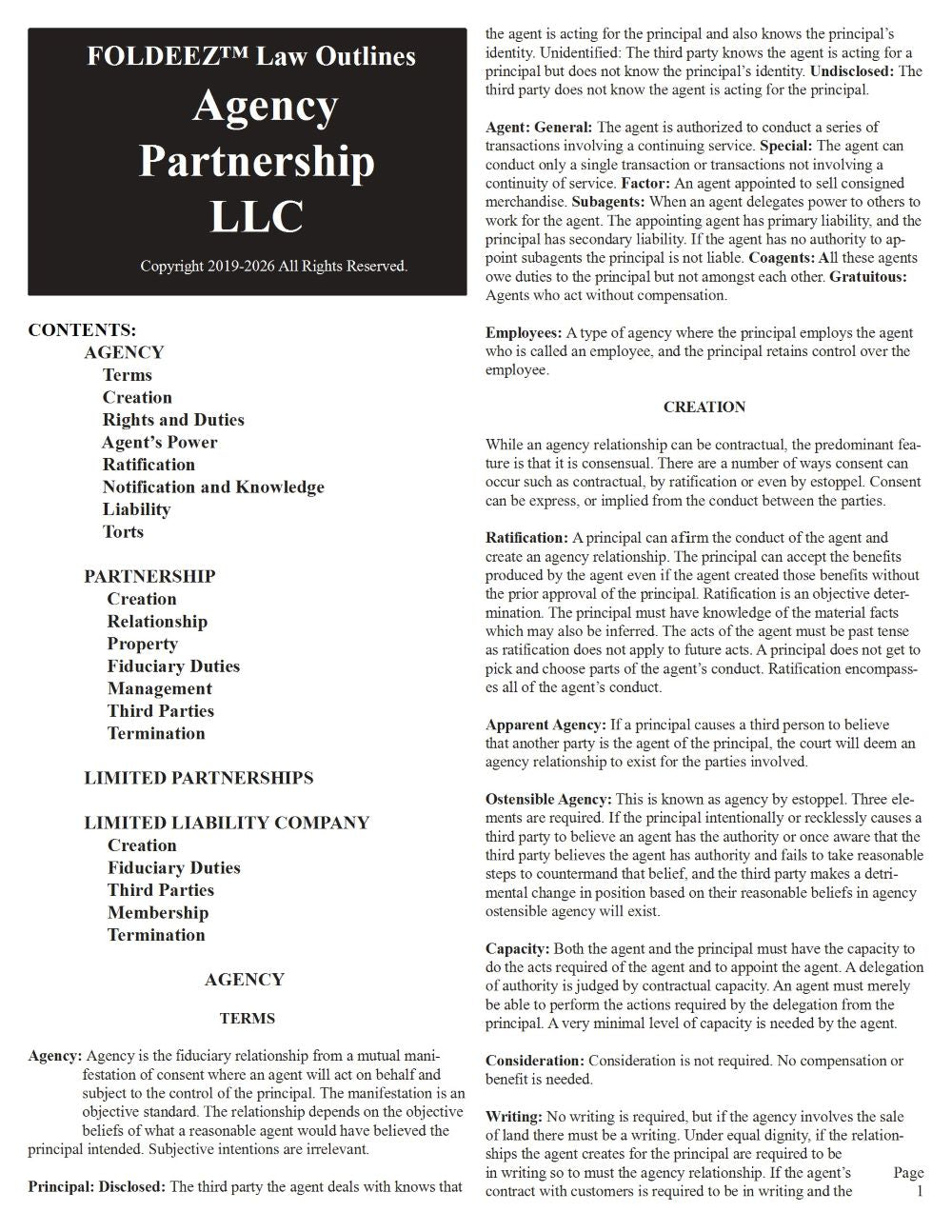 A Special Offer: AGENCY PARTNERSHIP LAW OUTLINE AT 1/2 PRICE