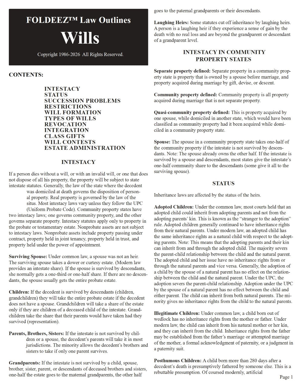 Each individual Foldeez™ is made of heavy paper stock and three holed punched (so they can fit right in your class note book) and contain all the information you need to know to get an A on your exams. Most of the products contain at least 12 pages of information. Foldeez™ are great for learning the law in a short period of time for law school exam writing. They contain concise, easy to understand explanations of the law. They retail from $1.95 to $8.95. Foldeez™ contain all the law a student should have memorized and be able to recall from memory the night before any exam. They are also fantastic for bar exam review too!