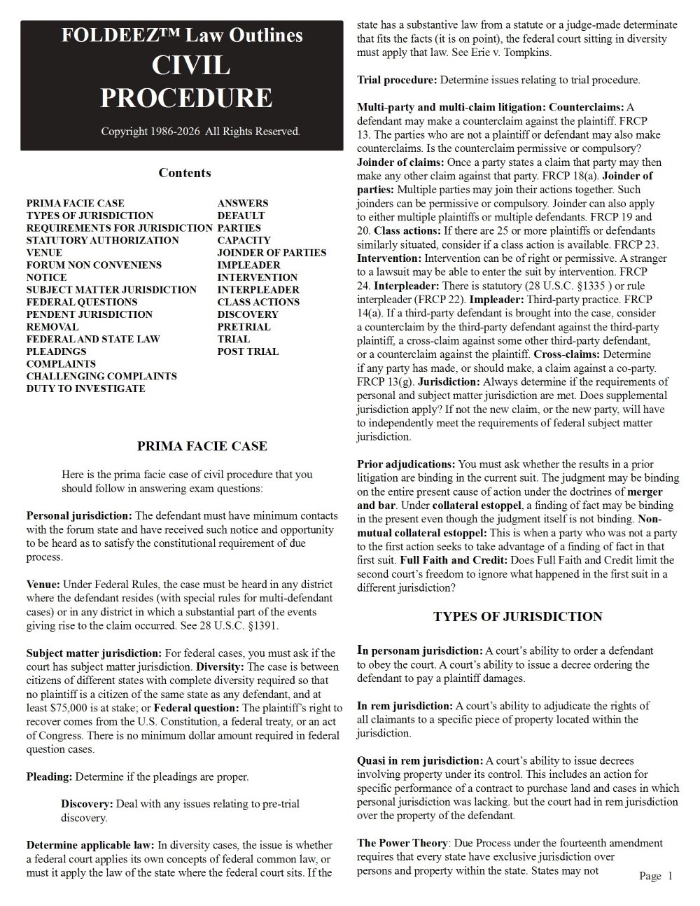 Topics: Jurisdiction by Territory / Subject Matter Jurisdiction / Federal and State Law Pleadings / Real Parties in Interest / Joinder of Parties/ Impleader Intervention / Interpleader / Discover / Pretrial / Trial Post Trial.