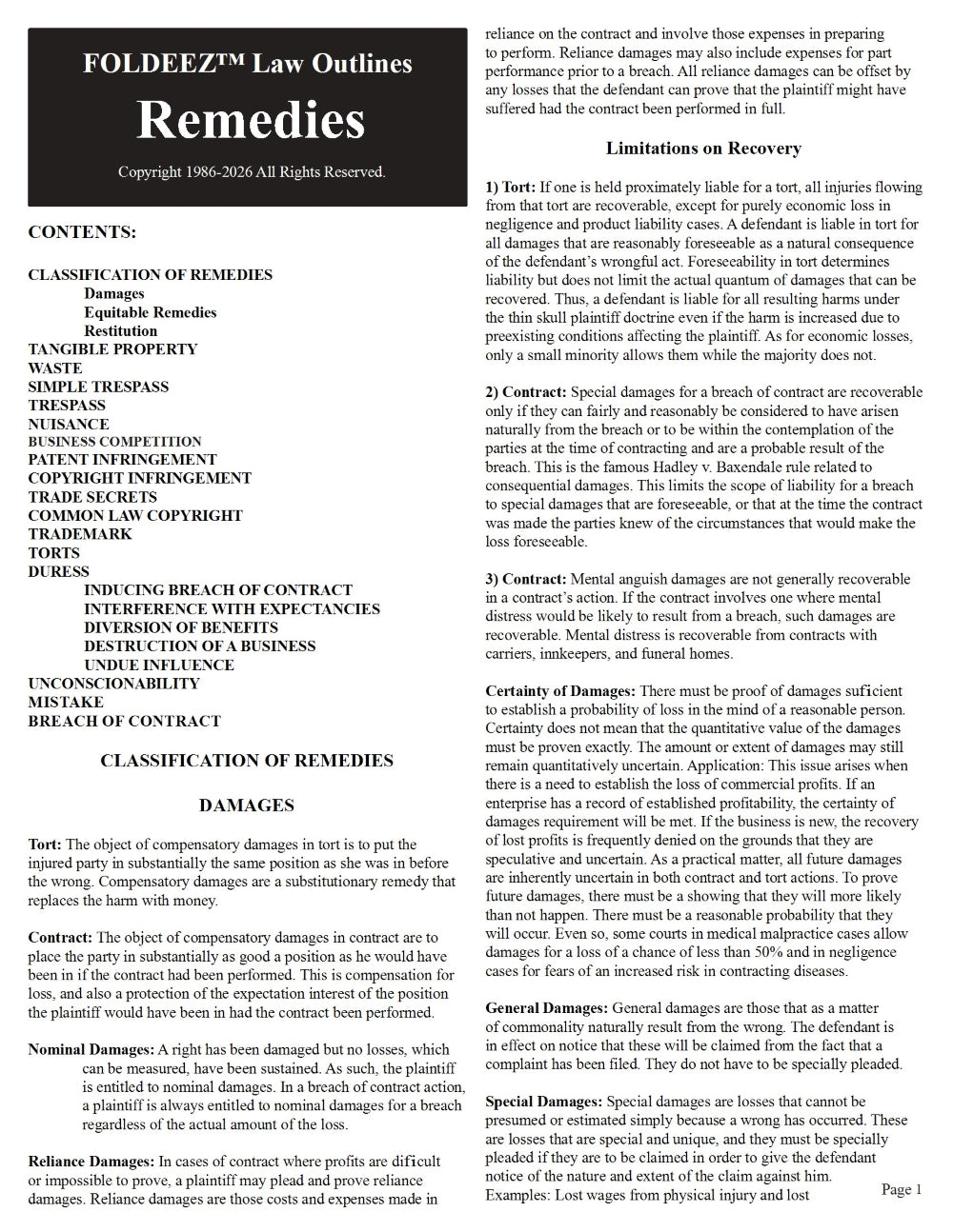 A Special Offer: REMEDIES FOLDEEZ LAW OUTLINE AT 1/2 PRICE